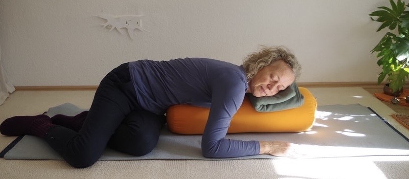 Diese Form des Yogas bietet die Möglichkeit, in überwiegend liegenden Positionen mit Hilfe von Kissen, Decken und Bolstern (runde längliche Kissen) bequeme Positionen einzunehmen. Die weiche Bettung hilft uns, mögliche Spannungen im Körper loszulassen. Außerdem wirken diese Übungen beruhigend auf das Nervensystem und erlauben uns, sowohl Körper als auch Geist in einen Ruhezustand zu bringen.